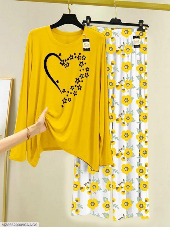 2 Pcs Girl’s Stitched Cotton Jersey Printed Night Suit